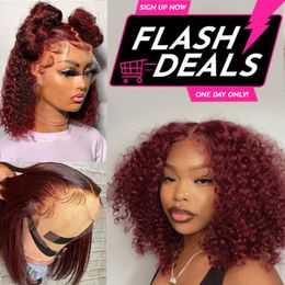 Red Deep Wave Lace Front Human Hair Wigs Transparent Brazilian Pre Plucked Remy Ebay